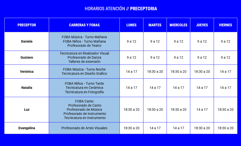 Es obligatorio haber cursado y aprobado el nivel secundario en su totalidad para poder ingresar a cualquiera de las carreras que ofrece la escuela, a excepción de los ingresantes interesados en FOBA Música o FOBA Canto, quienes pueden cursarlo a partir de los 14 años.